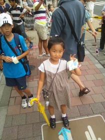 おもちゃ釣りに1番乗りの子です! 気合入ってます。