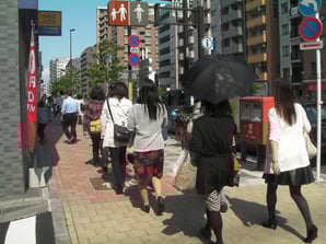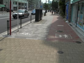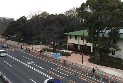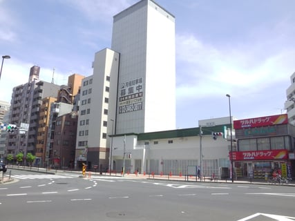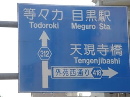 目黒通りの拡幅整備によって、歩道の真ん中に新居を構え
