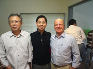 写真は「サンタカタリーナ農園」ペドロさん、「コーヒーのフロンティア」堀口さん、「Qグレーダー(コーヒーのソムリエの世界資格)の第一人者」伊藤さんです。