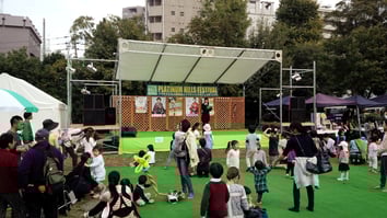 天気も良く動くと汗ばむ陽気にステージでは一緒に体を動かすダンスで